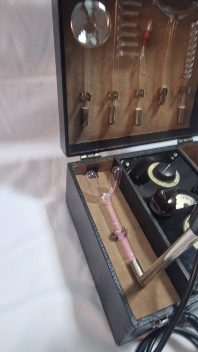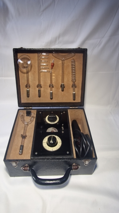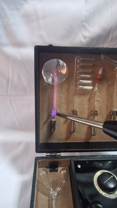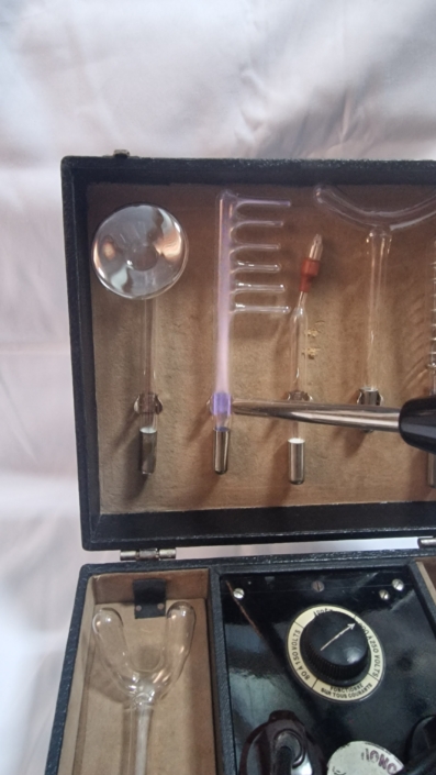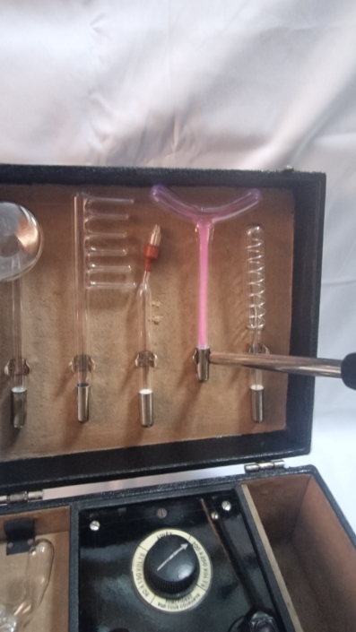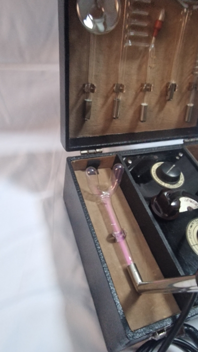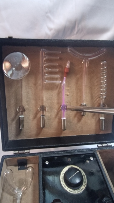 A restored Violet Ray with 6 electrodes. Wires and components have been replaced where necessary.